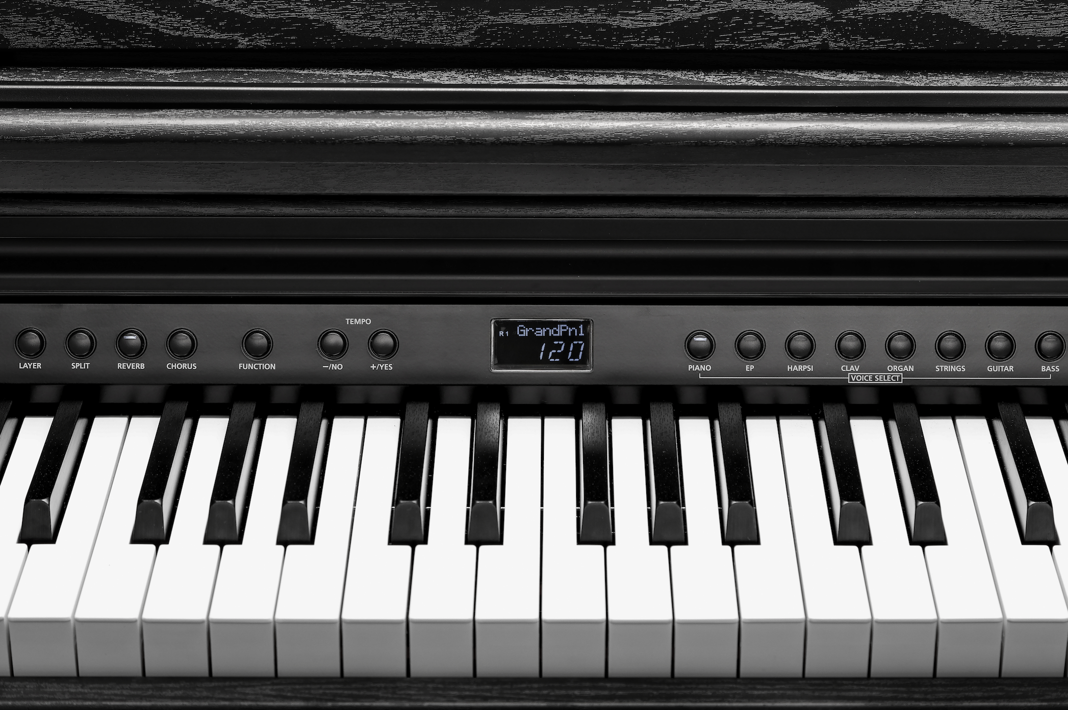 Цифрове піаніно. 88 клавіш з повнозваженою молоточковою механікою та чутливістю до натискання на клавіші (88RGTA), 6 обираних рівнів чутливості, Поліфонія: 32 голоси, програми: 16 основних (+116 для GM), функції нашарування тембрів, розділення клавіатури, режим Dual, 50 демо композицій + 221 навчальна композиція, рекордер: 5 композицій, General MIDI, Транспонування, Мікроподстройка, метроном, Режим навчання, акустична система: 30 W (15W + 15W), стерео лівий/правий RCA лінійні виходи, стерео лівий/правий RCA лінійні входи, 2 стерео виходи для навушників 1/4", USB передає MIDI сигнал, 3 вбудованих педалі сустейн, состенуто, софт (з ефектом напів-натиснення), колір: палісандр, банкетка під колір інструменту в комплекті, розміри: 1362 мм (ширина) x 440 мм (глибина) x 855 мм (висота), вага: 43.5 кг, живлення: зовнішній блок живлення DC 12V, 2.0A. |