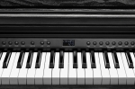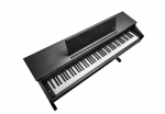 Цифрове піаніно. 88 клавіш з повнозваженою молоточковою механікою і чутливістю до сили натискання. 64-голосна поліфонія. 16 пресетів, 16 демо композицій, функція нашарування тембрів і поділу клавіатури, транспонування, ефекти: Reverb і Chorus, метроном, рекордер 2 трека. Акустична система: 2 х 15 Вт, Стерео аудіо виходи і входи (RCA), 2 входи для навушників 1/4", MIDI вхід / вихід, USB з функціональністю MIDI. 3 вбудованих фортепіанних педалі: sustain, sostenuto, soft. Колір: палісандр, банкетка в комплекті. Розміри: 81.5 x 138 x 42 см, вага: 49 Кг. |