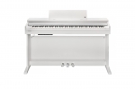 Цифрове піаніно. 88 клавіш з повнозваженою молоточковою механікою і чутливістю до сили натискання. 64-голосна поліфонія. 16 пресетів, 16 демо композицій, функція нашарування тембрів і поділу клавіатури, транспонування, ефекти: Reverb і Chorus, метроном, рекордер 2 трека. Акустична система: 2 х 15 Вт, Стерео аудіо виходи і входи (RCA), 2 входи для навушників 1/4", MIDI вхід / вихід, USB з функціональністю MIDI. 3 вбудованих фортепіанних педалі: sustain, sostenuto, soft. Колір: білий матовий, банкетка в комплекті. Розміри: 81.5 x 138 x 42 см, вага: 49 Кг. |