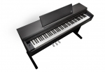 Цифрове піаніно. 88 клавіш з повнозваженою молоточковою механікою і чутливістю до сили натискання. 64-голосна поліфонія. 16 пресетів, 16 демо композицій, функція нашарування тембрів і поділу клавіатури, транспонування, ефекти: Reverb і Chorus, метроном, рекордер 2 трека. Акустична система: 2 х 15 Вт, Стерео аудіо виходи і входи (RCA), 2 входи для навушників 1/4", MIDI вхід / вихід, USB з функціональністю MIDI. 3 вбудованих фортепіанних педалі: sustain, sostenuto, soft. Колір: палісандр, банкетка в комплекті. Розміри: 81.5 x 138 x 42 см, вага: 49 Кг. |