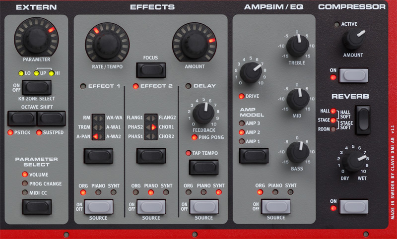 Классическое фортепиано Steinway звучит прекрасно, но не стоит забывать о других инструментах. В этой секции любой из пресетных инструментов может быть заменен другими звуками из библиотеки Clavia Piano бесплатно. Используя порт USB и Nord Sound Manager можно быстро загружать звуки с компьютера (Mac или PC).