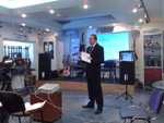 Ведущий семинара, бренд-менеджер компании РЕАЛМЮЗИК Дмитрий Волков раскрыл цели создания данной серии микрофонов, подчеркнул важность качественной передачи звучания во время выступлений музыкантов, устойчивости к обратной связи, совместимости с радиосистемами, легкости в использовании, а также ознакомил с техническими характеристиками моделей, благодаря которым достигнута основная цель разработки – передать эмоции виртуоза или аматора. По окончании ознакомления с принципами работы конденсаторных микрофонов 4099, их возможностями и преимуществами аудитория имела прекрасную возможность насладиться превосходным выступлением Романа Гринькива - заслуженного артиста Украины, действительного члена Международной ассоциации профессиональных музыкантов, старшего преподавателя Киевской Национальной Музыкальной Академии им. П. И. Чайковского, лауреата Всеукраинских и Международных конкурсов и его музыкального коллектива и самой убедиться в превосходном качестве звука, передаваемого инструментальными микрофонами DPA 4099. Благодаря продуманной организации презентации, зал мог услышать и сравнить звучание разных музыкальных инструментов с микрофонами и без них. Микрофон для трубы 4099 Trumpet подходит и для других духовых инструментов с сурдиной или без, справляется с высоким уровнем звукового давления, легко перемещается, деликатен к поверхности инструмента. Микрофон для саксофона 4099 Sax устойчив к обратной связи, отображение спектра тональных возможностей в зависимости от расположения микрофона на инструменте. Для скрипачей и альтистов миниатюрный размер и изящность микрофона 4099 Violin никогда не станет помехой при исполнении даже самых эмоциональных произведений. 4099 Guitar – это идеальный выбор не только для гитары, но и для мандолины, банджо и добро, предлагает неограниченные возможности расположения и передает звучание более естественно, чем при использовании внутреннего микрофона или звукоснимателя. Прекрасные импровизации коллектива Романа Гринькива позволили нам еще раз убедиться в том, что музыка способна передать эмоции лучше, чем любые слова, а инструментальные микрофоны DPA серии 4099 – дали возможность слушать и сопереживать говорящим без слов. |