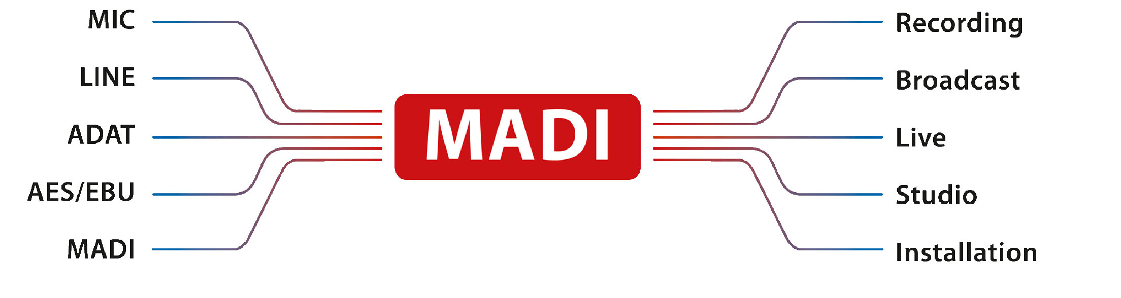 В итоге что мы получили благодаря использовании MADI: - 2 независимых «микса», - многоканальная звукозапись и резерв многоканальной звукозаписи с минимумом коммутации на любые расстояния (до 1 км)»