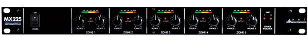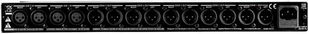 Обновленный (405 серия) зонный микшер имеет 4 XLR балансных входа, 10 XLR балансных выходов (5 зон), в каждой зоне: