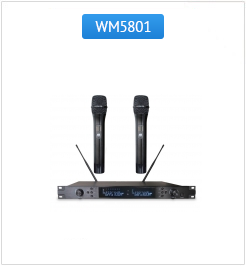WM5801 також має в комплекті два ручні динамічні радіомікрофони в металевих корпусах, але передавачі можна налаштовувати на 158 каналів в діапазонах 740 – 763,4 МГц та 766,4 – 789,8 Мгц, живлення від двох батарей АА. Екран з РКД показує стан, частоту та рівень заряду батарей. База-приймач в металевому рековому корпусі висотою 1U має окремі регулятори гучності для кожного з каналів, окремі симетричні виходи XLR та загальний вихід MIX OUT на роз’ємі “джек” 6.3мм, а також оснащена екраном з РКД та індикаторами RF і AF. Система має функцію автоматичної синхронізації, з’ємні антени на роз’ємах BNC та виконана за технологією True Diversity з двома незалежними приймачами на канал.