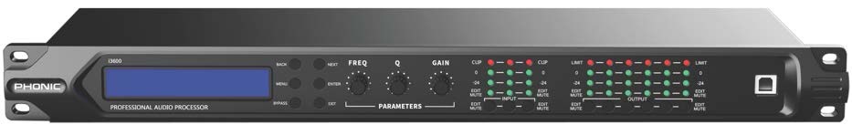 Спікер процесори i3600 та i4800 забезпечують чудову якість звуку з мінімальною затримкою у 1,8 мс (вхід на вихід, аналог). За допомогою кнопок на передній панелі можна миттєво отримати доступ до редагування параметрів. Маршрутизація аудіосигналів між вхідними та вихідними каналами легко здійснюється за допомогою програмного забезпечення. Гнучке і зрозуміле програмне забезпечення PiWare забезпечує простоту керування системою. Кожен вхідний канал пропонує широкі можливості обробки сигналу, маючи компресор та лімітер, FIR фільтр та 15-смуговий параметричний еквалайзер, 28-смуговий графічний еквалайзер, динамічний еквалайзер та функцію затримки до 1000 мс. Вихідну маршрутизацію можна налаштувати в режимі гібридної матриці, вільно призначуваної матриці або за допомогою пресетів маршрутизації. Гнучкі канальні з'єднання забезпечують швидке та зручне конфігурування акустичних систем. Широкий вибір типів фільтрів вихідних каналів включає 10-смуговий параметричний еквалайзер, all-pass фільтр та 6 FIR фільтрів з максимальною затримкою до 1000 мс. Вихідні лімітери використовують алгоритм з передбаченням PXL, забезпечуючи точний контроль потужності динаміків та найнижчі спотворення. Елементи керування на передній панелі дозволяють швидко мʼютувати вхідні та вихідні сигнали, редагувати всі параметри та викликати пресетні налаштування. За допомогою ПК або планшета з ОС Windows та Android ви можете керувати всіма пристроями i3600 / i4800 у мережі Ethernet через спеціальне програмне забезпечення PiWare, а також зберігати всі налаштування у пресети. Технічні характеристики