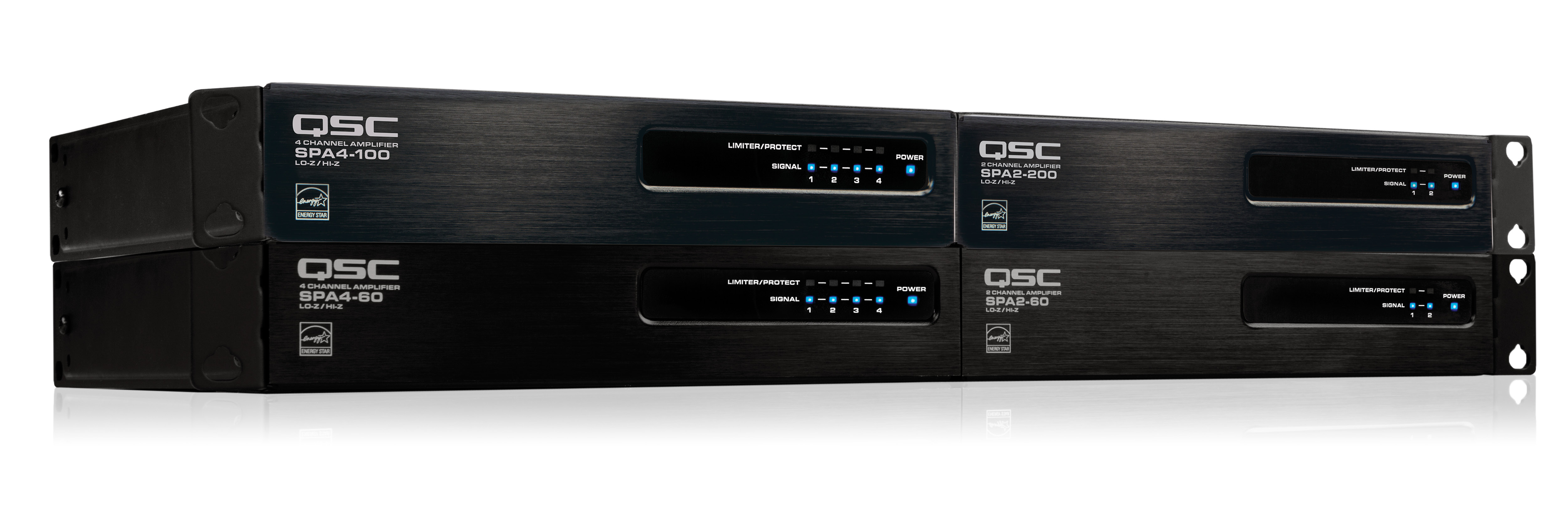 Лінійка високоефективних інсталяційних підсилювачів потужності QSC серії SPA, що відповідають стандарту Energy Star ®, включає в себе чотири моделі з вражаючими характеристиками. Так, двох або чотирьохканальний підсилювач класу D поміщається в надзвичайно компактному напіврековому (!) корпусі висотою 1U та видає потужність до 200 Ватт на канал при навантаженні 4 Ом і 8 Ом – без примусового охолодження! А в мостовому режимі ці підсилювачі здатні видавати до 350 Вт на трансляційних лініях 70 В або 100 В та до 400 Вт на канал на низькоомному навантаженні!