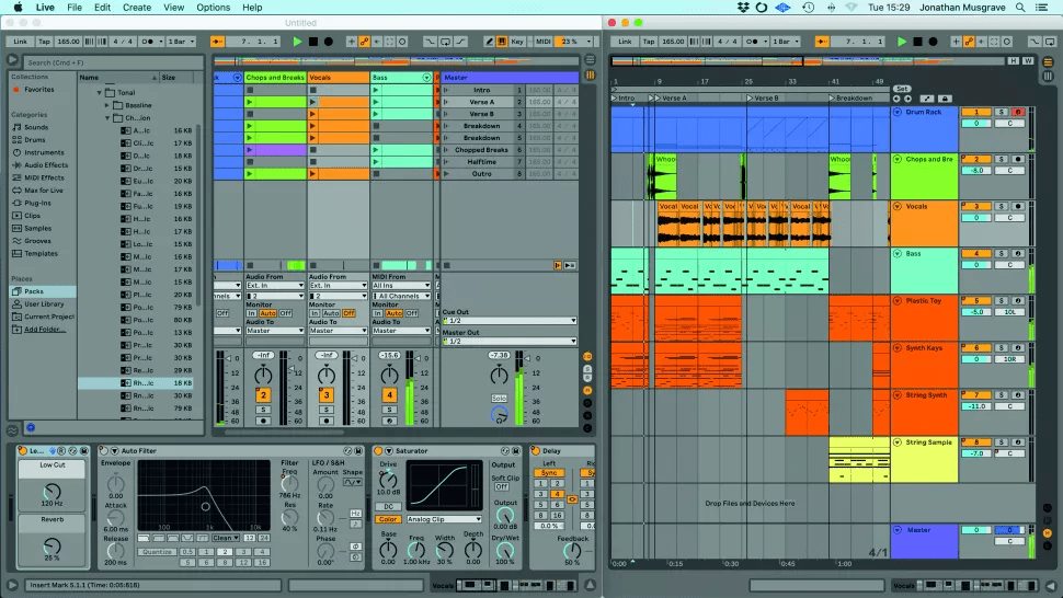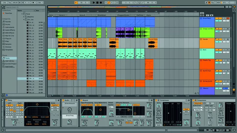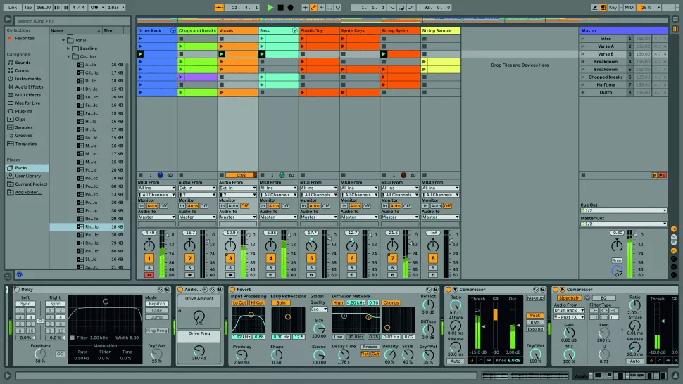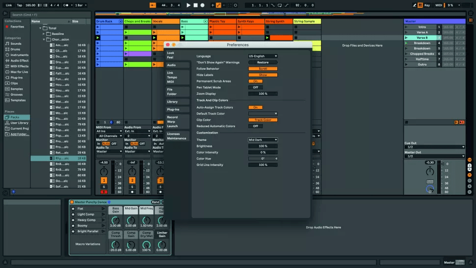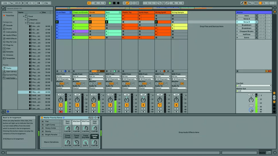 Друга частина посібника Ableton Live 11 Lite від Computer Music знайомить вас з інтерфейсом та навігацією цього софту. На на веб-сайті Ableton доступні платні повнофункціональні версії Ableton Live, а ми продовжуємо тренуватися на Live 11 Lite! ![]() Крок 1. Для ознайомлення ми скористаємося демонстраційним треком в Live 11 Lite. Цей сет (файл .als) має завантажитись автоматично, коли ви авторизуєте свою копію Live Lite. Якщо вам потрібно завантажити цей сет заново, знайдіть Demo Songs, який в ОС Windows знаходиться в папці Program Data, а в OS X – у файлі самої програми, і щоб побачити його виберіть “show package contents” (показати вміст пакета). ![]() Крок 2. Live 11 Lite використовує розкладку з центральним робочим простором, обрамлений різними розкладними панелями. Деякі панелі мають вкладки з кількома розділами, а транспортна панель знаходиться у верхній частині екрану. Спробуйте перетягнути роздільники панелей, щоб змінити їхній розмір. ![]() ![]() Крок 4. У нижній частині робочої області знаходиться Detail View (детальний перегляд), і знизу є дві вкладки: Clip View (перегляд кліпу) та Device View (перегляд пристрою). В режимі Clip View ви побачите MIDI або аудіо, залежно від типу кліпу. А в Device View будуть показані пристрої, які використовуються в цій доріжці, наприклад, натиснувши на вокальний трек “Vocal”, ви побачите тут різні ефекти. ![]() Крок 5. Live пропонує два способи роботи. Два види, Session (сесія) і Arrangement (аранжування), можуть використовуватись окремо. Однак вони також співіснують у вашому сеті Live Set, тому можуть працювати і разом, ми розглянемо це пізніше. Спробуйте перемикатися між двома режимами перегляду в демонстраційному сеті за допомогою маленьких піктограм із трьома вертикальними або горизонтальними лініями або за допомогою клавіші Tab. ![]() Крок 6. Session View (перегляд сесії) пропонує нелінійний робочий процес та ідеально підходить для чорновиків ваших ідей або для живих виступів. Структурними блоками сесії є MIDI або аудіо кліпи, які мають визначену початкову та кінцеву точки. Вони розташовані у вертикальних доріжках Tracks і можуть запускатися як окремо, так і як частина горизонтальних сцен. Тут ми запускаємо сцену “Verse A” за допомогою її кнопки Play. ![]() Крок 7. Arrangement View – це горизонтальна шкала часу, де ви можете вільно впорядковувати та записувати MIDI та аудіо кліпи, а доріжки збігаються з доріжками у Session View. Для збільшення або зменшення масштабу перетягніть курсор на лінійку тактів та таймкоду Beat-Time угорі. Клацніть в області аранжування, щоб вибрати позицію відтворення, клацніть на Scrub Area вгорі для постаку відтворення. ![]() Крок 8. Існує багато способів розпочати відтворення в Live Lite, включно з відтворенням кліпу сесії, коли решта вашого сету відтворюється в режимі аранжування. Клацніть на помаранчевому значку Back To Arrangement (назад до аранжування), щоб відновити відтворення аранжування, або натисніть кнопку транспорту Stop All Clips (зупинити всі кліпи) у режимі Session View, щоб повернутися до перегляду сесії. ![]() Крок 9. І нарешті, ви можете налаштувати загальний вигляд Live Lite за своїм бажанням. Перейдіть до меню Preferences (налаштування) та відкрийте вкладку Look Feel. Тут ви можете вибрати кольори за замовчуванням для треків та кліпів або вибрати одну з п’яти загальних колірних тем із налаштуваннями яскравості, інтенсивності тощо. Джерело Читайте також 1 частину циклу навчальних статей для початківців, присвячених Ableton Live 11.