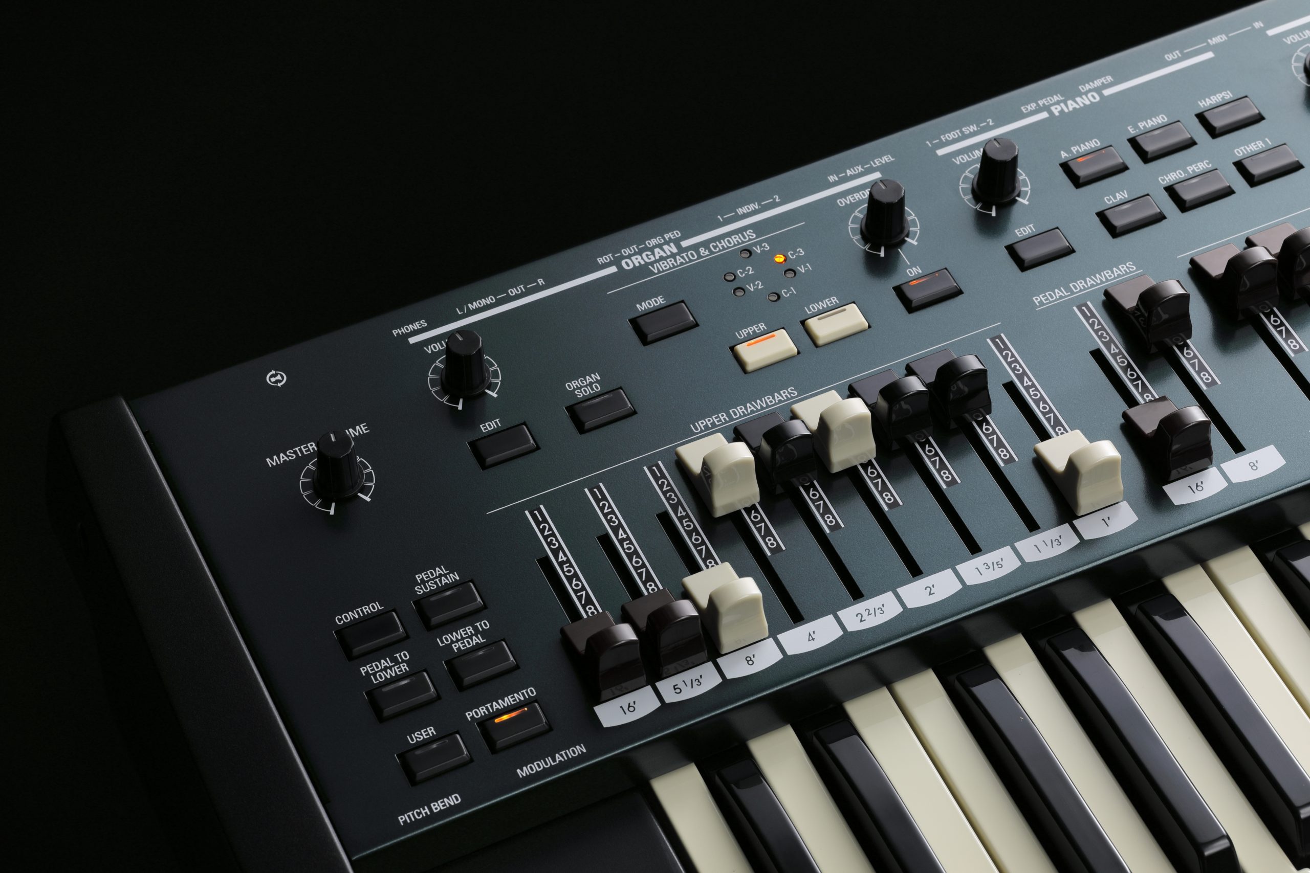 Колесо висоти тону, колесо модуляції, портаменто, Leslie (Bypass, Stop, Fast)