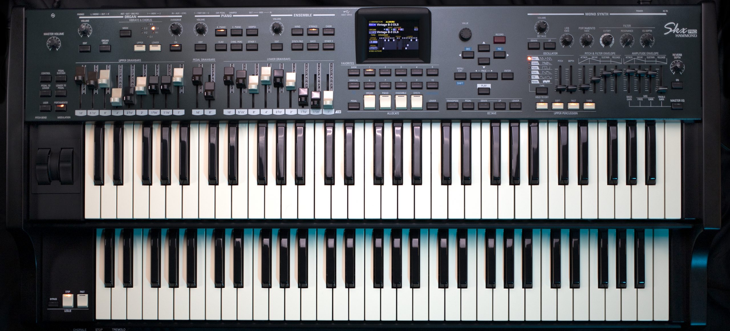 Hammond SkPRO швидко став улюбленим сценічним інструментом музикантів усіх жанрів, тож з'явився запит на двомануальну версію. Не важливо, у якому стилі ви граєте, SkxPRO задовольнить ваші потреби у справжньому двомануальному органі Hammond з усіма необхідними додатковими звуками, для будь-якого виступу або студійної сесії. SkxPRO має всі звуки та функції моделей SkPRO з 61 та 73 клавішами.