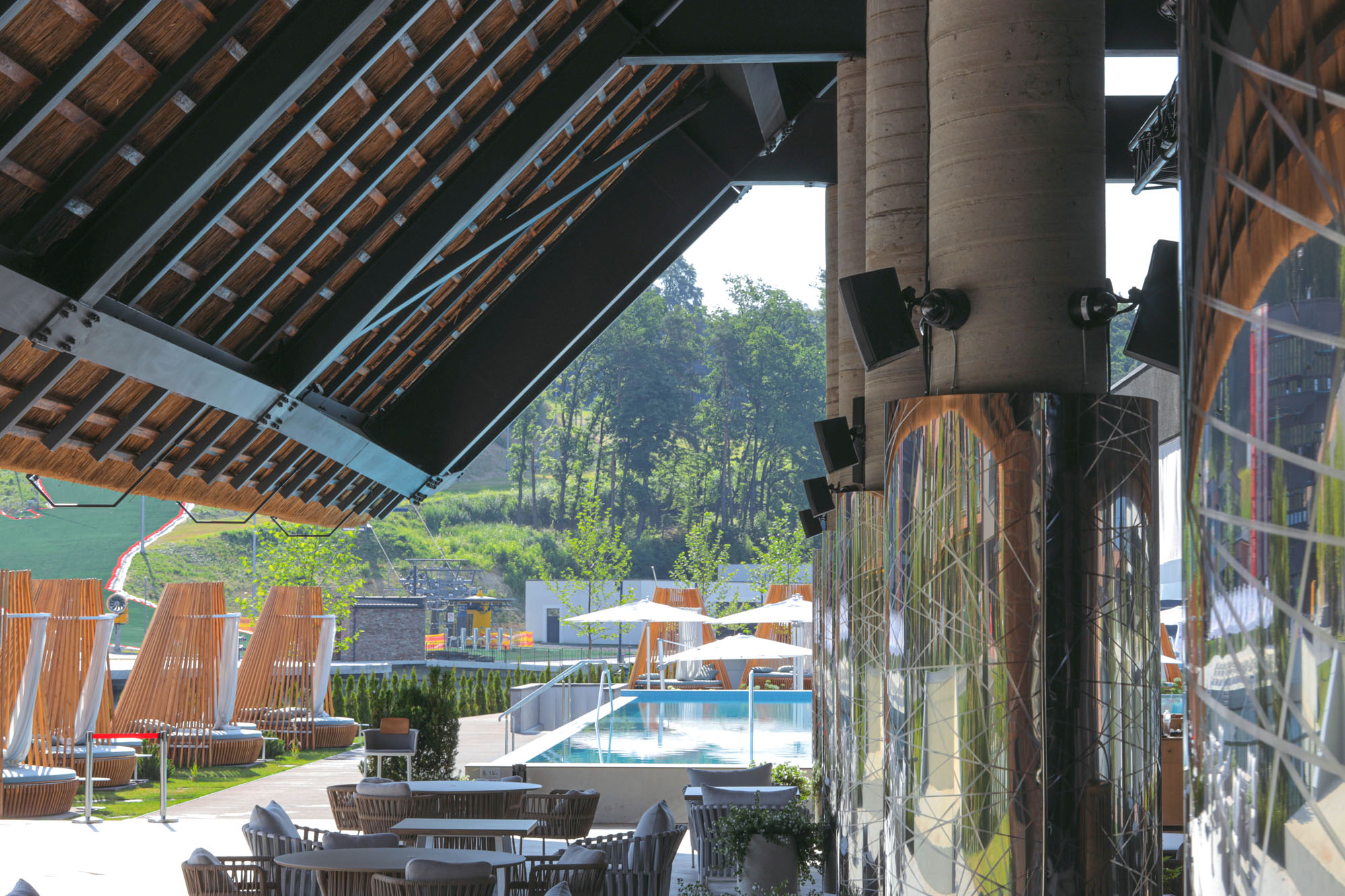 Захисники України на фронті зараз воюють саме за те, щоб наша Україна жила, працював бізнес, розвивалась культура, і продовжувалось цивільне життя. Із великою шаною та вдячністю нашим славним воїнам, ми продовжуємо працювати разом заради нашої спільної перемоги. Раніше ми вже писали про масштабні інсталяції звуку в заміському комплексі відпочинку поблизу Львова Emily Resort. Тепер прийшла черга озвучити дві круті відкриті локації цього курорту: острів ISLAND BEACH CLUB та пляж CITY BEACH. Виконання інсталяційних робіт проводила компанія-інтегратор FatSound. На цих двох майданчиках було використане найкраще інсталяційне обладнання Q-SYS від лідера ринку – американської компанії QSC. ![]() ISLAND BEACH CLUB