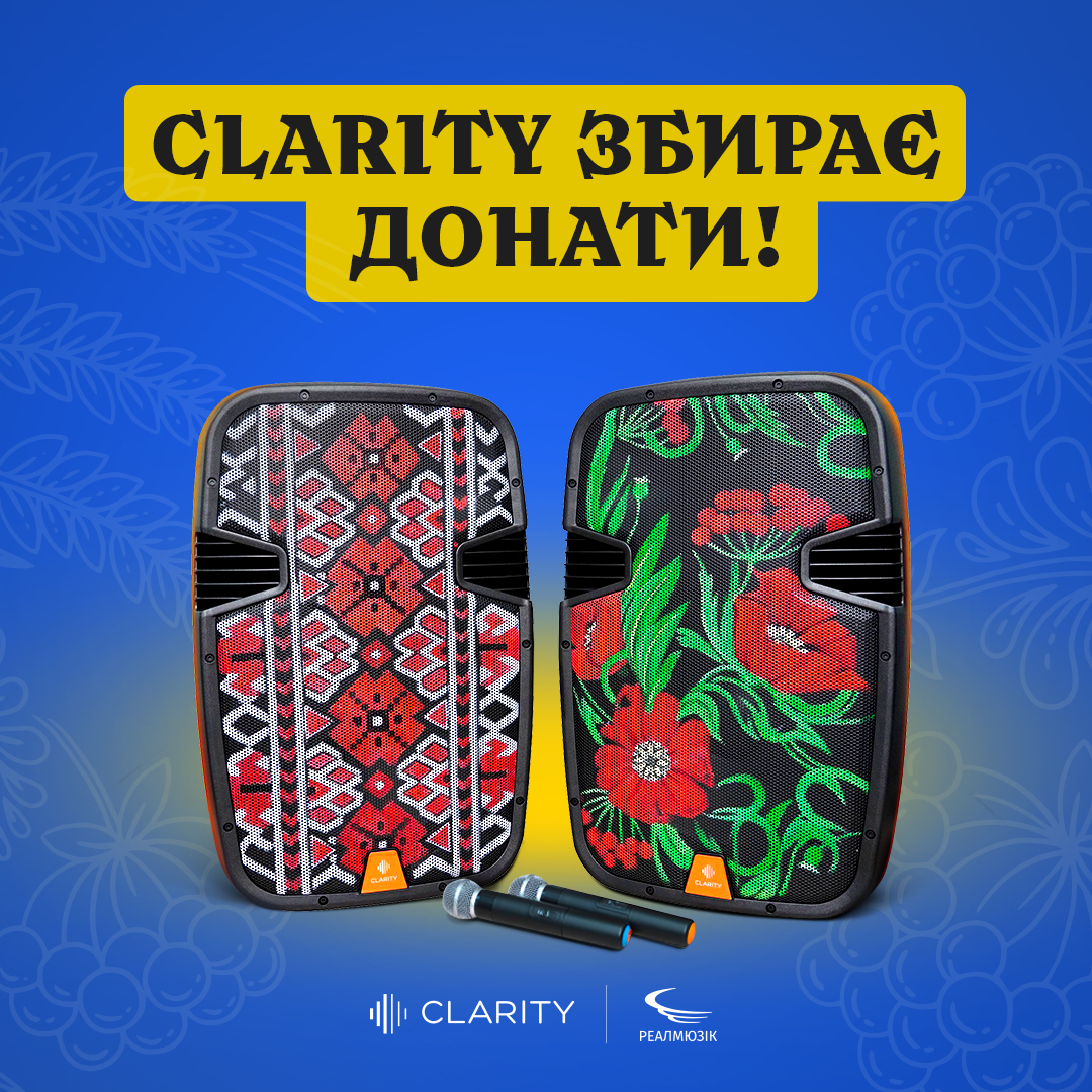 Хто сказав, що акустична система повинна бути чорною? Тільки уявіть — як буде звучати “Червона Калина” з таких колонок! Компанія РеалМюзік та бренд Clarity продовжують працювати заради перемоги і оголошують конкурс зі збором донатів! Хлопці на передовій отримають вашу підтримку, а переможці конкурсу отримають ексклюзивні мобільні акустичні системи Clarity MAX15MBAW з автентичним розписом! ![]() Умови конкурсу: