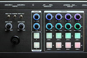 Підвищуйте виразність своїх виступів за допомогою програмованого джойстика висоти тону / модуляції, восьми програмованих ручок, восьми користувацьких кнопок, двох входів для педалей-перемикачів та входу для плавного педального контролера. Налаштуйте кольори різних ручок і кнопок на передній панелі відповідно до вашого стилю та практичних задач.
