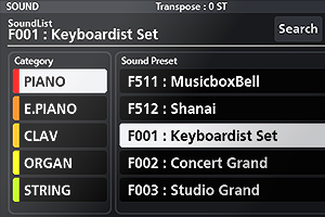 SP7 пропонує 512 різноманітних пресетів, поділених на 13 категорій, серед яких є і фірмове звучання великого концертного рояля German “D” 9 ft. з флагманської моделі K2700.