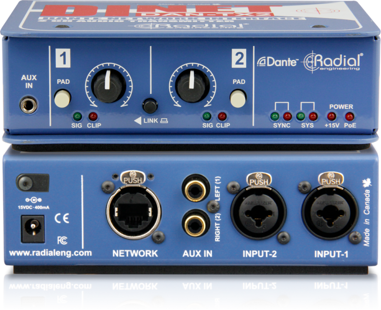 Radial Engineering пропонують рішення як для прийому двох аудіоканалів з мережі, так і для передачі двох аналогових сигналів у мережу Dante. Обидва пристрої обробляють цифрове аудіо з якістю 24 біти / 96 кГц, сумісні зі специфікаціями AES67 та працюють від зовнішнього блоку або мережевого живлення PoE.