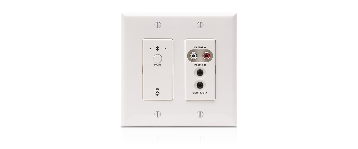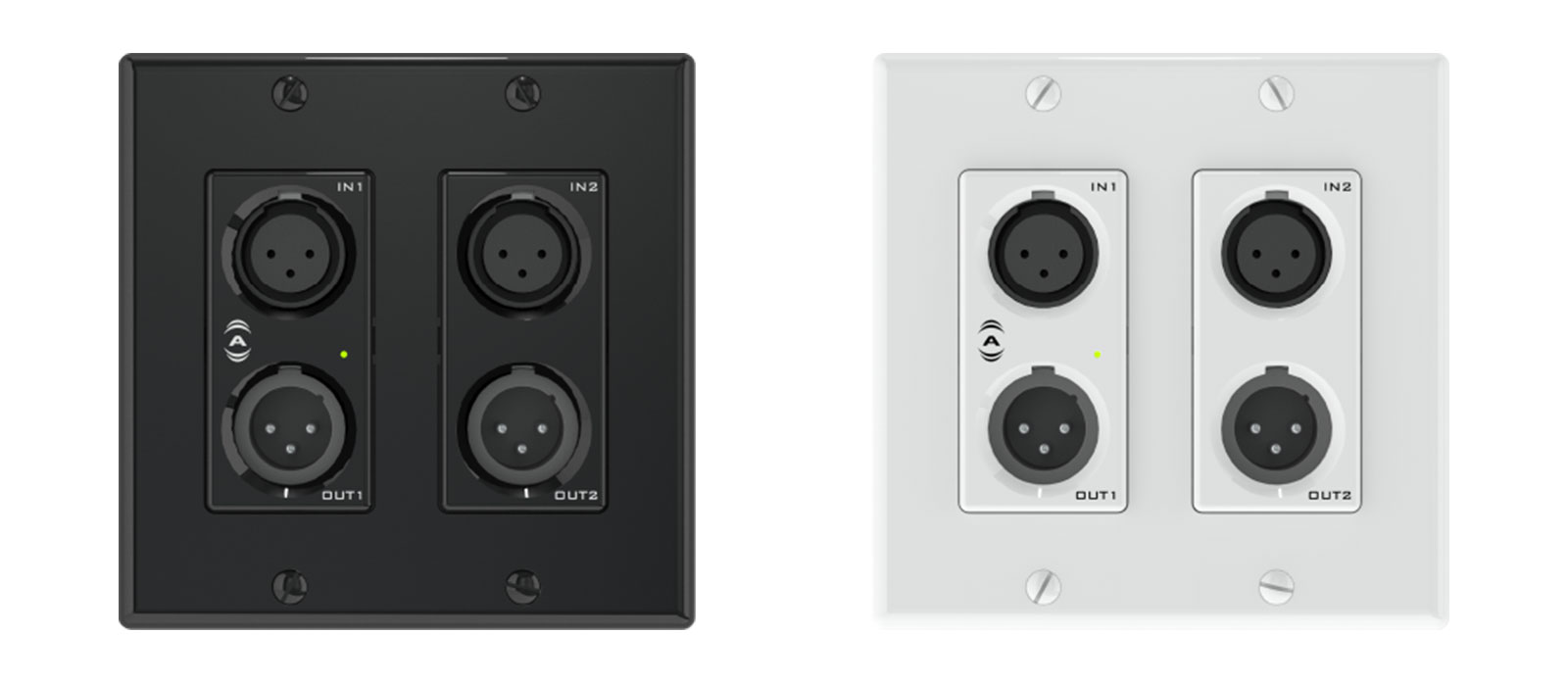 Настінна інтерфейсна панель unDX2IO+ працює у мережі Dante/AES67 і також має 4 входи і 2 виходи.