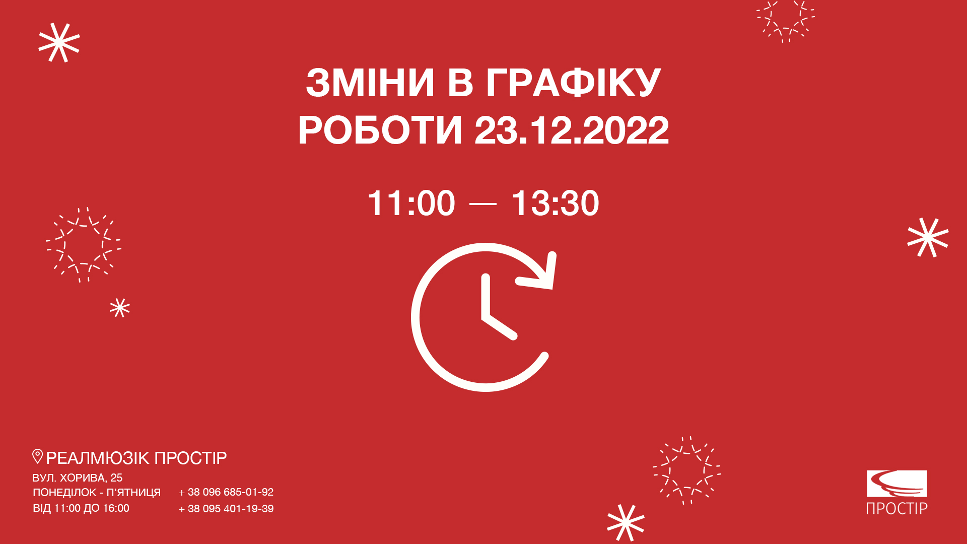![]() Шановні відвідувачі, а особливо покупці! Повідомляємо, що 23 грудня наш дружній колектив підбиватиме підсумки року, а тому РеалМюзік Простір на Подолі працюватиме тільки до 13:30, вибачайте. А з наступного понеділка і до п'ятниці наш магазин працюватиме за своїм звичним графіком: від 11:00 до 16:00. Заходьте до нас на Хорива, 25. Або телефонуйте: +38 096 685-01-92 +38 095 401-19-39 |