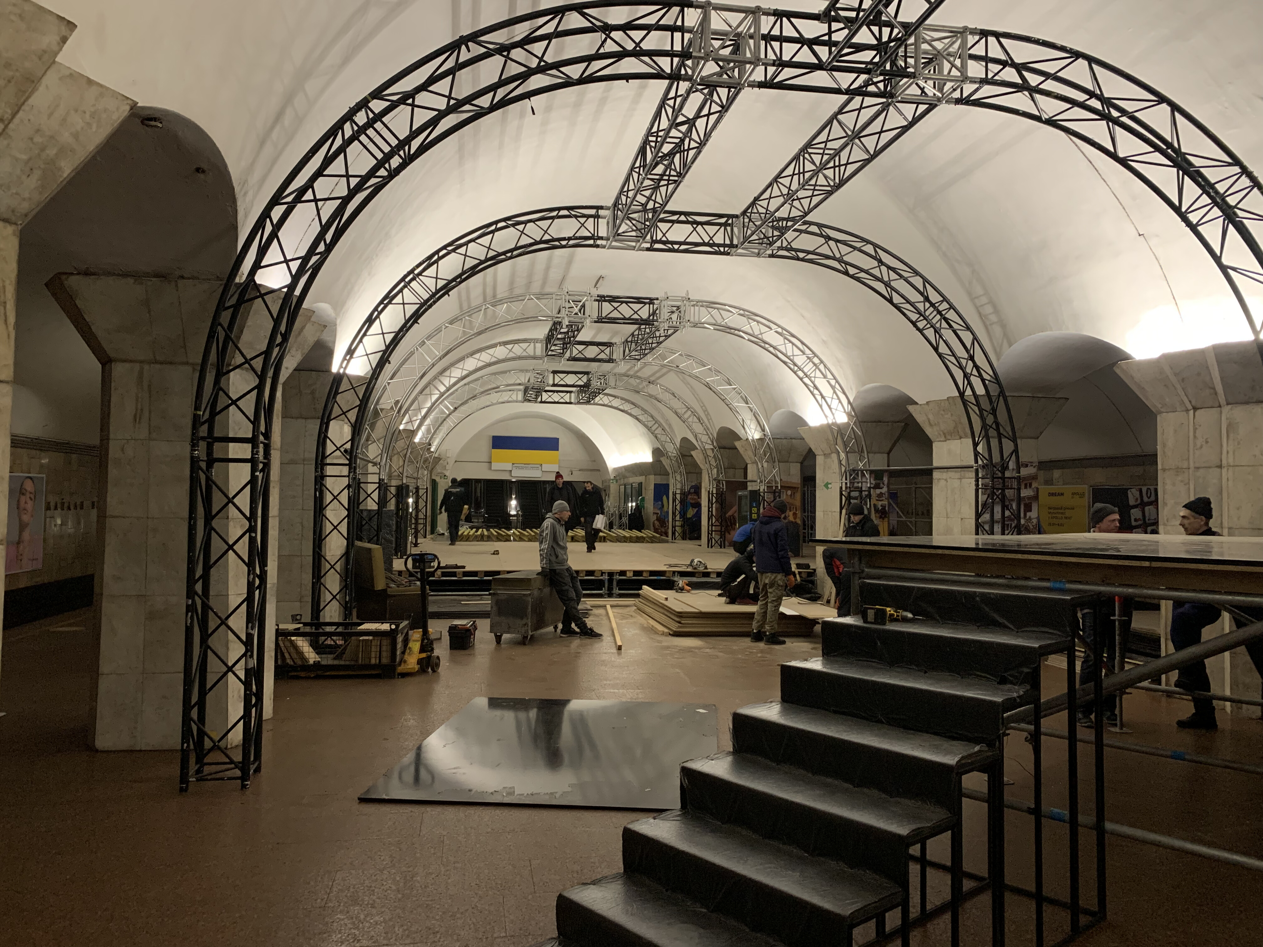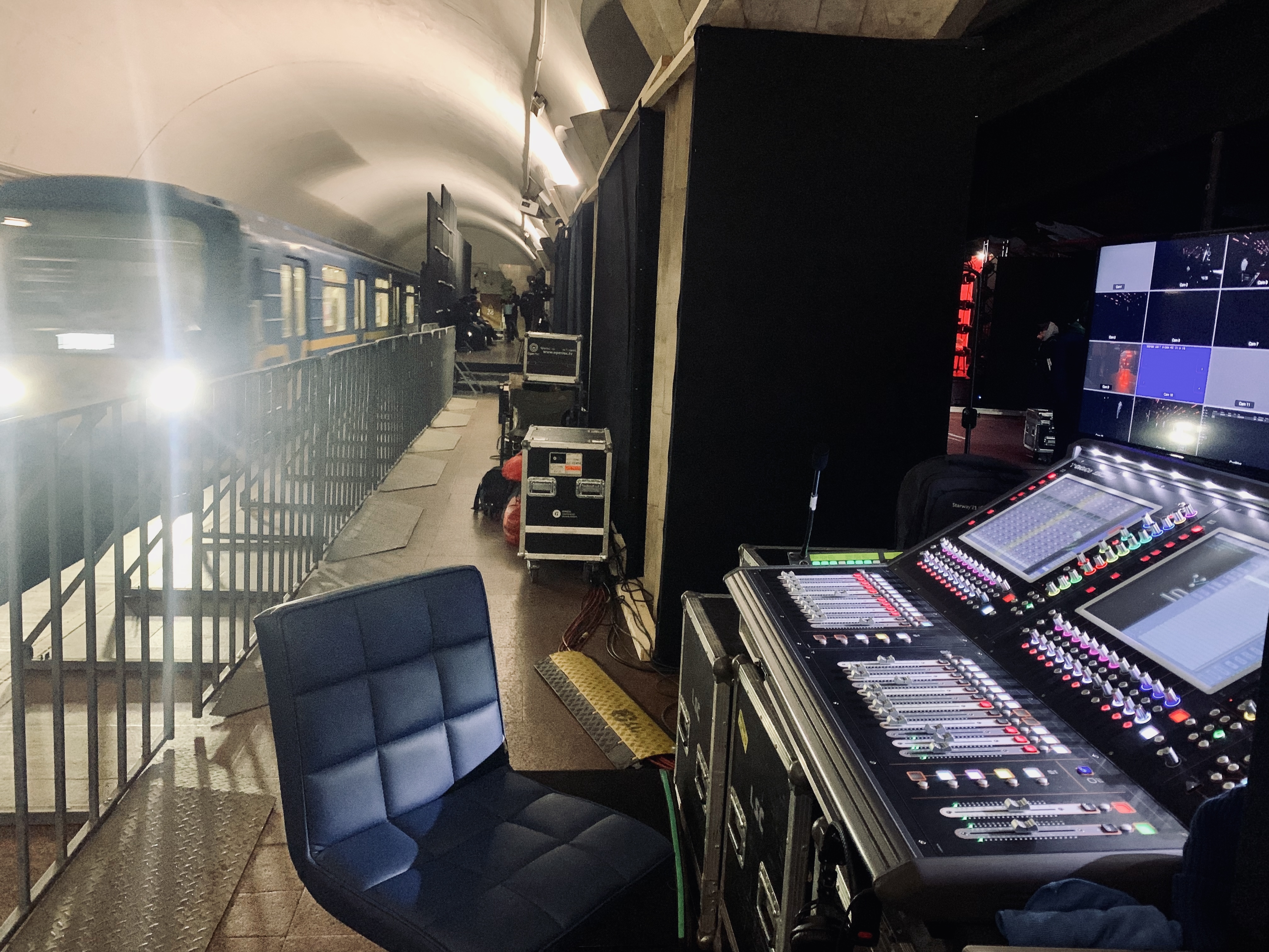 Також складність була у тому, що ця локація дуже мала та зовсім не призначалась для проведення таких заходів. Потрібно було знайти компроміси та найоптимальніші технічні рішення між усіма присутніми службами, щоб все «влізло» та працювало. Але все вийшло та ніхто не ображався) Доставка обладнання вже на сам майданчик здійснювалась звичайним потягом метрополітену, тільки вже в неробочий час. Це було дуже незвично, багато емоцій. З одного боку — коли б ми ще мали змогу працювати в такому незвичному та непростому місці? З іншого боку — причини цієї вимушеної міри зовсім невеселі. Але для нас українців немає такого, щоб ми не змогли! Метро — так метро)”