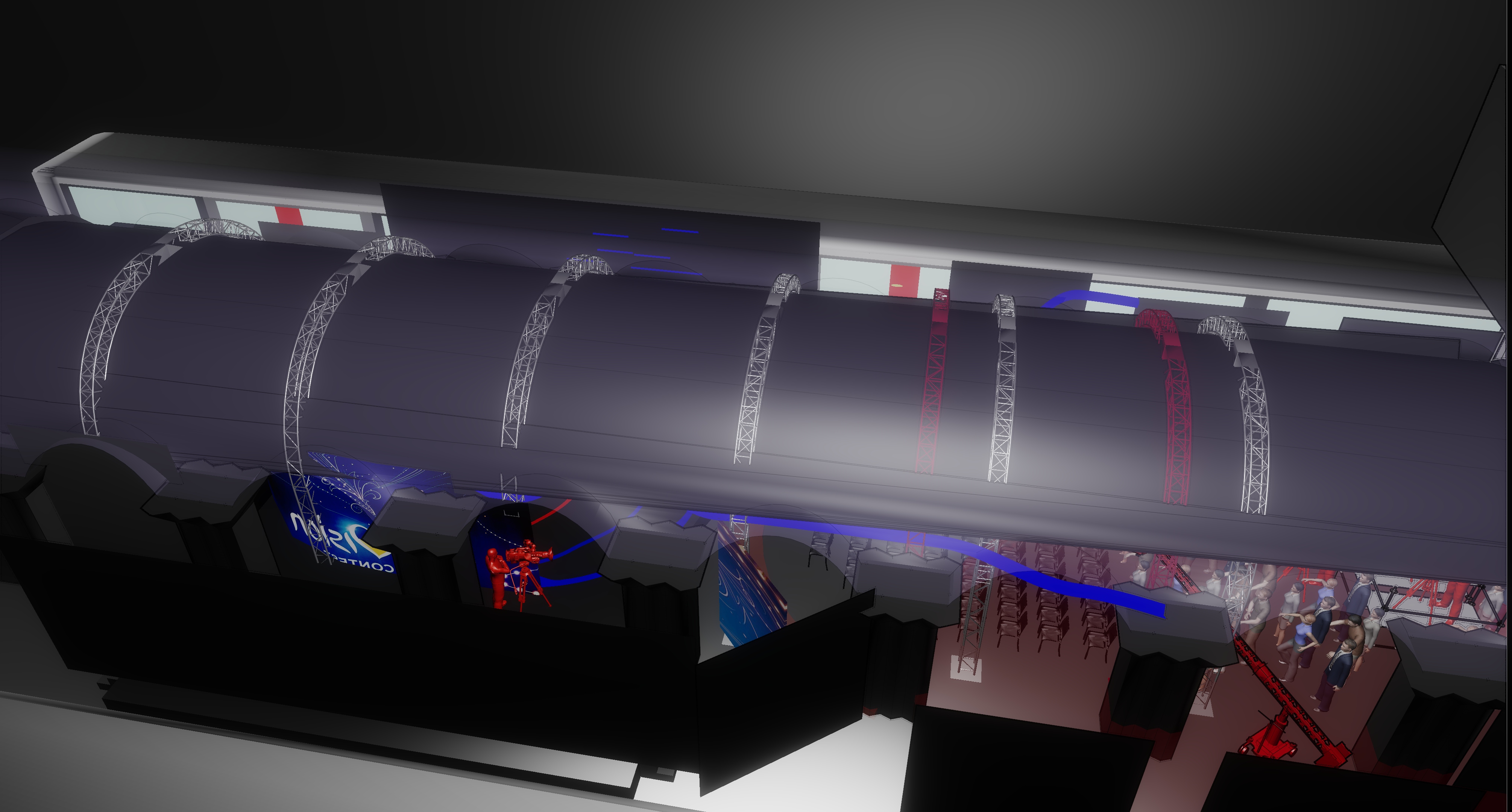 Особливість 1. Сценографія. Між колонами станції метро 7 метрів, стеля зроблена півколом, і у найвищій точці має близько 6 метрів. Одразу ж з’явився челенж, як зробити так, щоб глядачам приміщення не здавалось тісним, сцена малою, а стеля - низькою.