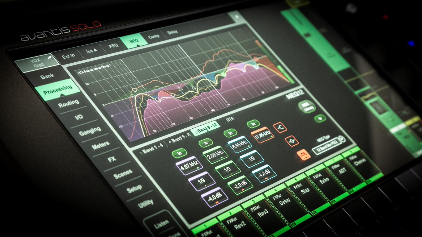 Інженерам, що працюють з міксами для персональних вушних моніторів, неодмінно сподобаються нові для Avantis dPack 12-смугові параметричні еквалайзери NEQ12 з фільтрами зрізу НЧ та ВЧ. Ці обробки можна вибирати замість графічних еквалайзерів на будь-якому з мікс-каналів Avantis, щоб формувати IEM-мікси з високою точністю.