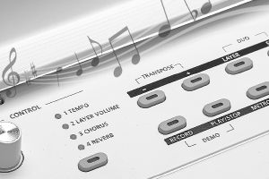 - Виконавські режими: розділення клавіатури / нашарування тембрів / дует