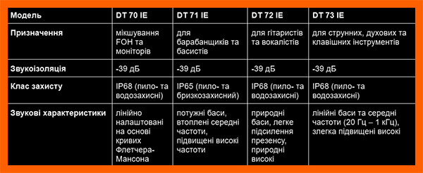 ![]() DT 70 IE — нові професійні вушні монітори для мікшування та референсного прослуховування від beyerdynamic Компанія beyerdynamic випускає нову модель професійних внутрішньоканальних навушників DT 70 IE, оптимізованих для мікшування та референсного прослуховування на концертах і в студії. Інноваційна динамічна система драйверів TESLA.11 забезпечує високу чіткість звуку з низьким рівнем спотворень та максимальним SPL до 137 дБ Компактний дизайн з ідеальною посадкою у вусі та високим рівнем звукоізоляції -39 дБ Частотна характеристика 5 – 40 000 Гц, лінійно налаштована на основі кривих рівної гучності Флетчера-Мансона Міцне та надійне з’єднання з позолоченими роз’ємами MMCX Пило- та водонепроникність з класом захисту IP68 Виготовлення вручну в Гайльбронні, Німеччина ![]() Потужні та компактні DT 70 IE — це ваш максимально точний інструмент, незалежно від того, чи ви працюєте в студії, наживо на концерті чи в дорозі. Розроблені спеціально для звукорежисерів, ці навушники оснащені системою драйверів TESLA.11 та мають фізіологічно лінійні налаштування, забезпечуючи точне відтворення звуку, якому ви можете повністю довіряти. Розроблені спеціально для мікшування та референсного прослуховування DT 70 IE — ідеальний вибір для звукорежисерів, які вимагають найвищої точності мікшування та критичного прослуховування. Компактний форм-фактор цих навушників робить їх ідеальним супутником у концертному використанні, в студійній роботі та навіть у дорозі. Частотна характеристика, лінійно налаштована на основі кривих рівної гучності Флетчера-Мансона, забезпечує збалансоване та автентичне відтворення звуку, яке ідеально підходить також і для аудіофільського прослуховування музики. ![]() Інноваційна конструкція драйверів — референсне відтворення Серцем DT 70 IE є виготовлена в Німеччині система драйверів TESLA.11, яка перевершує традиційні збалансовані арматурні системи. Вона забезпечує видатну чіткість та деталізацію відтворення звуку з мінімальними спотвореннями (СКНС 0,02%). Завдяки швидкому імпульсному відгуку всі акустичні події відтворюються з найвищою точністю. А зі звуковим тиском до 137 дБ DT 70 IE є одними з найпотужніших внутрішньоканальних моніторів з низьким рівнем спотворень. Краща посадка — кращий звук Багато внутрішньоканальних моніторів мають погану посадку у вусі через великі системи драйверів, що впливає на якість звуку та ізоляцію. DT 70 IE вирішують цю проблему завдяки компактним драйверам TESLA.11 та ергономічному дизайну, заснованому на сотнях МРТ-сканів будови вуха. Ці навушники компактніші за аналогічні моделі та пропонують чудовий звук, оптимальну ізоляцію та високий комфорт. Для максимальної гнучкості та ідеальної посадки у комплекті поставляються п'ять пар силіконових амбушюр та три пари з піни з ефектом пам'яті Comply™. ![]() Відмінна звукоізоляція На концертних майданчиках може бути надзвичайно гучно, тому вкрай важливо, щоб високоякісні внутрішньоканальні монітори забезпечували чудову якість звуку, захищаючи ваш слух від довготривалого шкідливого акустичного впливу та пошкоджень. Модель DT 70 IE має пасивну звукоізоляцію -39 дБ, що робить її однією з найкращих систем на ринку за цим показником. В студії, на сцені та будь-де! Навушники DT 70 IE були розроблені разом зі звукорежисерами та відповідають всім вимогам студійного та концертного використання. В